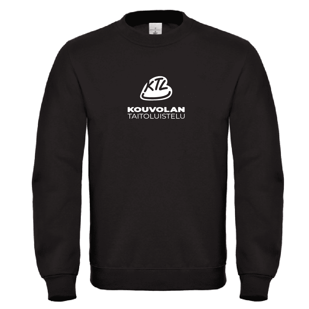Musta collegepaita, jossa edessä valkoinen Kouvolan Taitoluistelu logopainatus.
