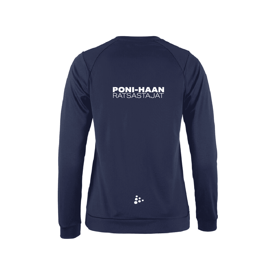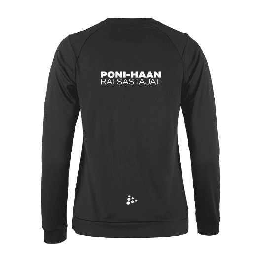 Valkoinen Poni-Haan ratsastajat teksti painettu paidan selkään.